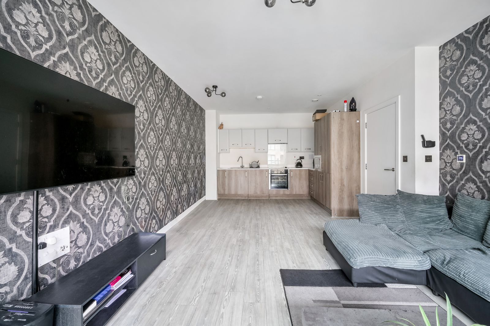 Features include a video entry phone security system, a large walk-in storage cupboard which houses the property’s washing/dryer and heating system, Amtico style wood effect flooring, underfloor heating and feature light fitting.